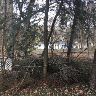 That is exactly what I did yesterday. My client moved into her new home a few months ago and hired me for an ambitious project to restore her yard to be a functional habitat for birds. The first, and probably the most important step, was to remove the invasive species that have been there from around the 1970's. And there was a lot of that stuff there! I removed 13 Burning Bushes, a large colony of Asian Honeysuckle, a few Asian Cherry trees, a couple White Mulberry and quite a few Japanese Barberry shrubs. When the weather warms I will return to tackle the Vinca Minor (aka "Periwinkle") that is carpeting a section of her yard that has wonderful native Hemlocks and White Pines. I haven't even planted one native plant yet but the yard is already in a much improved state as it was a couple of days ago. With the cuttings we created a brush pile in the corner of the back of her yard that will serve as shelter for overwintering birds and many other valuable fauna.